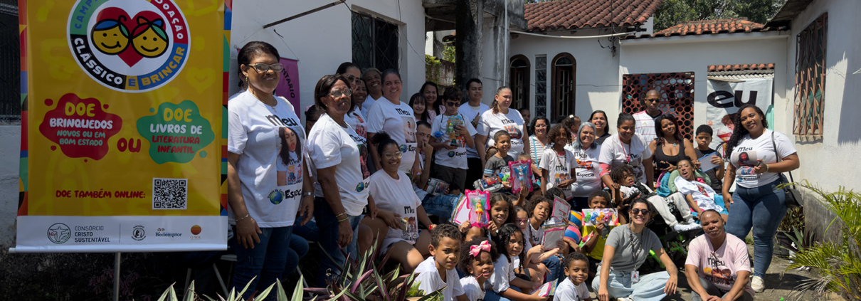 O Consórcio Cristo Sustentável lançou a campanha social “Clássico é Brincar” nesta terçafeira, 16 de setembro, que está arrecadando brinquedos e livros infantis em bom estado para crianças em situação de vulnerabilidade social, e realiza entrega de doações na manhã desta quarta-feira (17), no município de Duque de Caxias.