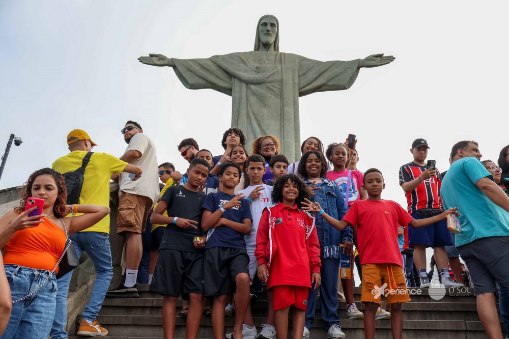 Depois da imersão, o grupo seguiu para o Santuário do Cristo Redentor. A chegada ao Corcovado foi marcada por emoção, sobretudo porque, para muitos, era a primeira vez diante do monumento.